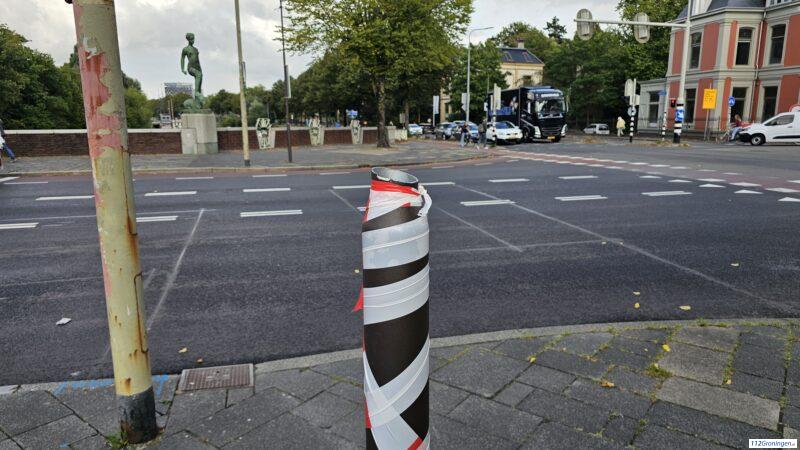 Groningen – Bij de Herebrug is een paal omgezaagd met camera’s die kentekens scannen rond
