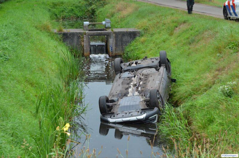 Auto belandt op de kop in sloot na botsing bij Westerlee