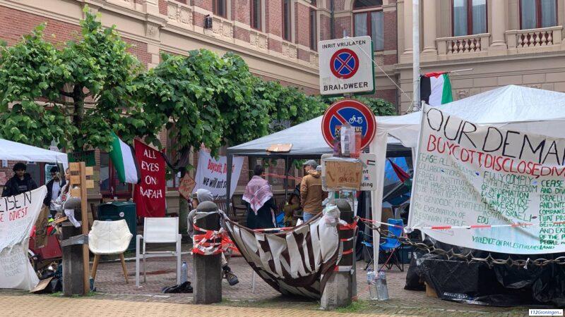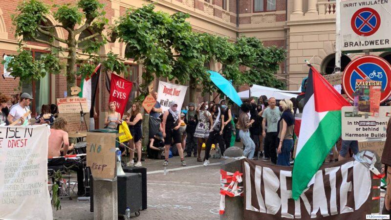 Groningen- Het Harmoniecomplex is nog steeds bezet door de pro Palestina demonstranten. Drie weken geleden