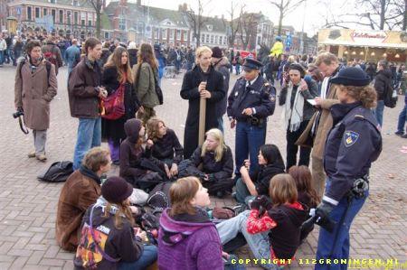 Een paar honderd scholieren voerden vrijdag opnieuw actie bij de Ossenmarkt in Groningen. Er waren