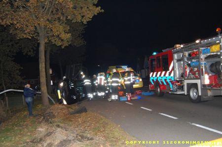 Kollumerzwaag – Een bestuurder van een auto is vrijdagavond om 22:00 uur gewond geraakt bij