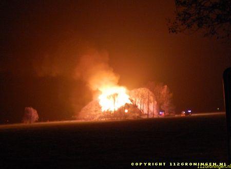 Kollumerpomp – Een felle brand heeft zondagochtend rond 06:00 uur boerderij “Groot Kabel” aan de