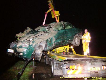Auto vliegt over de kop op A7 bij Oudeschans + ongeval