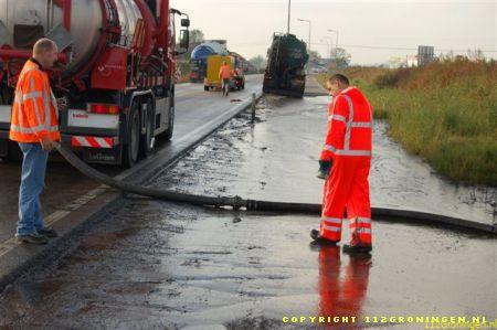 Bietenwagen komt in sloot naast A7 nabij Marum