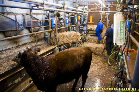 Oldekerk – Zondagmorgen is na het melken een koe in de melkstal terecht gekomen aan