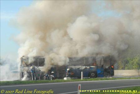 Bus verwoest door vuurzee op A28 nabij Eelde (+ Video)