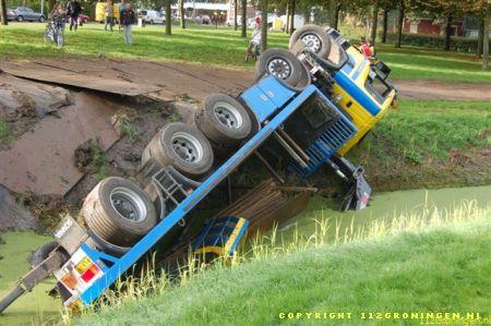 Groningen – Op de Ulgersmaweg in Groningen is maandagmorgen om 10:30 een vrachtwagen geladen met
