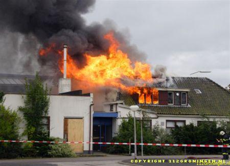 Veendam – Een felle uitslaande brand heeft zondagmiddag 30 september een voormalig kantoorpand aan de