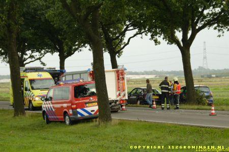Bedum – Als gevolg van een voertuig die naast de weg is gekomen slaat een