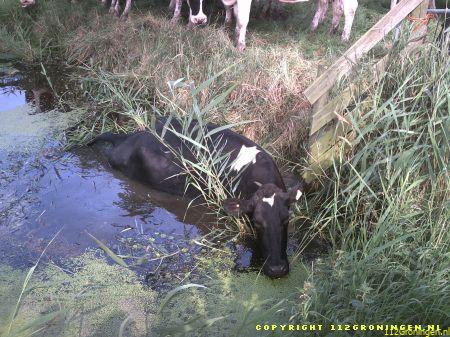 Winsum – Er was vrijdagmiddag een koe te water bij de Winsumerweg. De boer zorgde