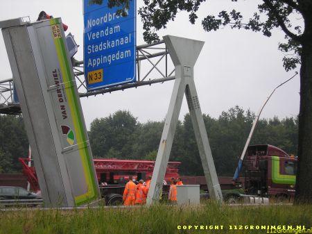 Kiepwagen blokkeert uren deel van A7 bij Zuidbroek(+Video)