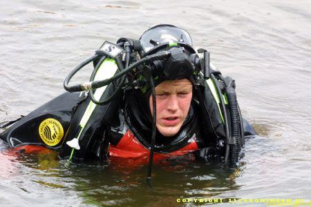 Groningen – Maandagmiddag heeft de brandweer een korte duikoefening gehad nabij de Vissersbrug, twee duikers