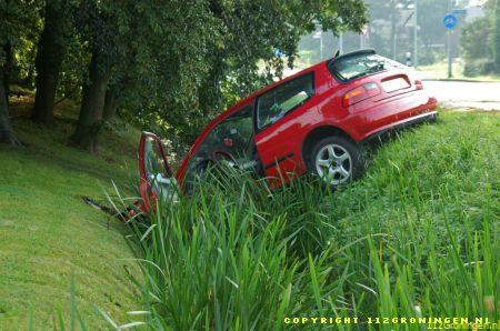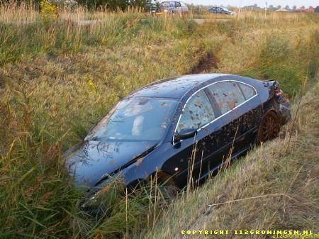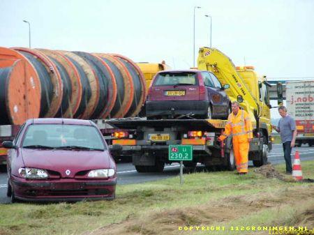 112Kort: Auto komt naast A7 in sloot+auto vangrail A7