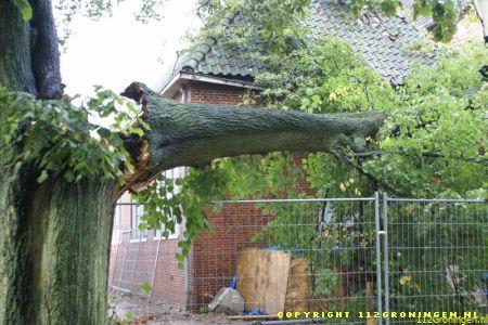 Appingedam – Een grote boom is maandagavond op een pand gevallen. De brandweer van Appingedam