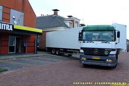 Hoogezand – Maandagmiddag om een uur of twaalf kwam een truck met oplegger vast te