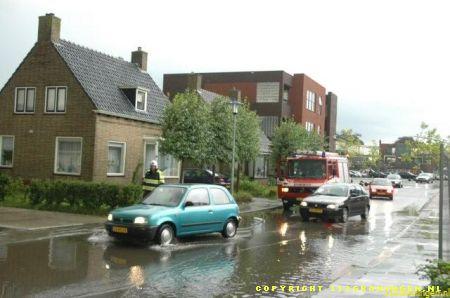 Marum – Een hevige wolkbreuk zette maandagmiddag de Wendsteinweg ter hoogte van timmerbedrijf Boonstra blank.