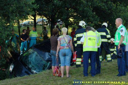 Auto raakt in droge sloot bij Blijham, 2 gewonden
