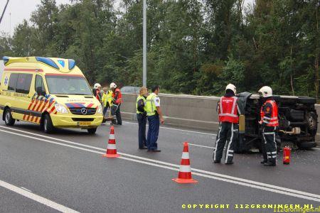 Automobilist(31) belandt op zijn kant op A28 bij Haren (+Video)