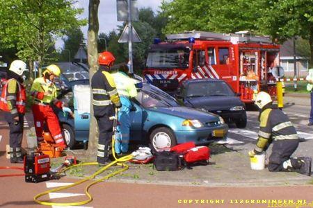 (foto 15-08-07 in Stadskrant) Groningen – De bestuurders van twee personenauto’s werden zaterdagmorgen naar een