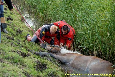 Brandweer helpt uitgeput paard uit sloot