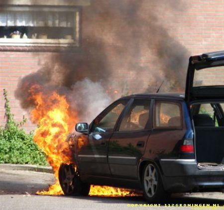 Vuurzee verwoest auto bij Baken in Lewenborg(+video)