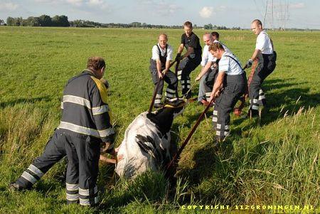 Oldehove – Vanmiddag rond 13.50 werd de brandweer van van Oldehove opgeroepen voor een koe