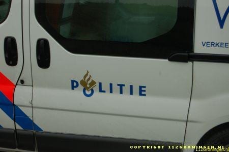 112Kort: Hevige regen in Groningen E.O+Politiebusje in berm