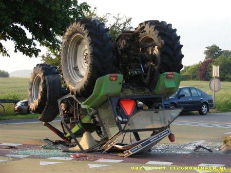 Trekker op de kop in Stedum met 2 gewonden