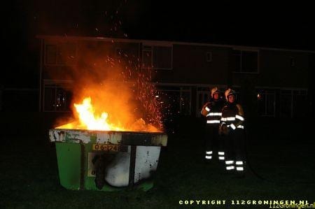 Veendam – De brandweer van Veendam is vanavond uitgerukt naar het museumplein voor een containerbrand.