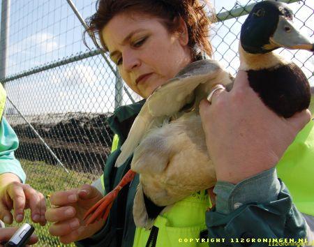 Groningen – Vrijdagmorgen zat er een eend vast in een net bij Velocitas in het
