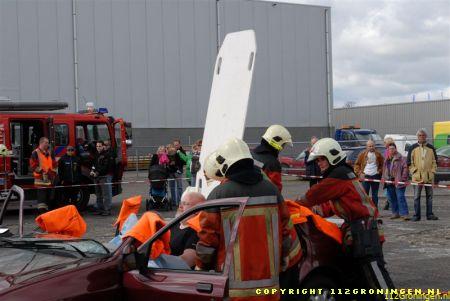 Roden – De brandweer van Roden heeft zaterdagmiddag een demonstratie gegeven bij autobedrijf Martin Sanders