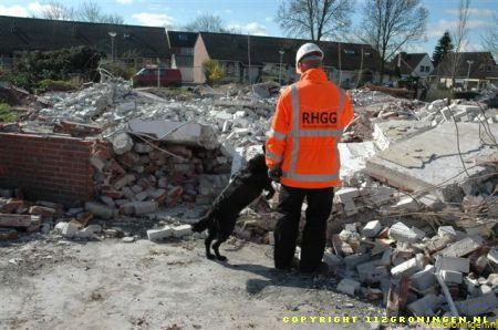 Marum – In de puinhopen van de bijna afgebroken bejaardenwoningen aan de Iepenlaan in Marum,