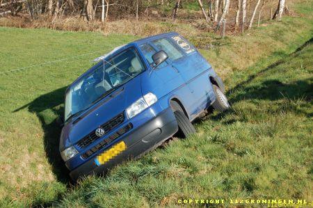 De Punt – Vanmorgen om 09:50 lag er een Vw Transporter in de sloot naast