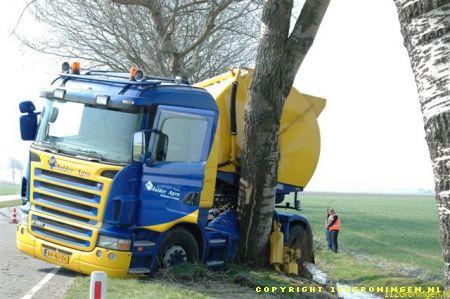 Vrachtwagencombinatie botst tegen boom