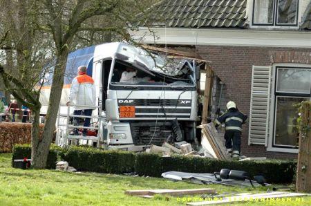 Tankauto(Gulf) vol benzine rijdt woning binnen