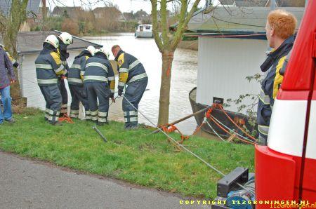 Appingedam – Door de hevige regenval van afgelopen donderdag zijn enkele bootjes in het Damsterdiep