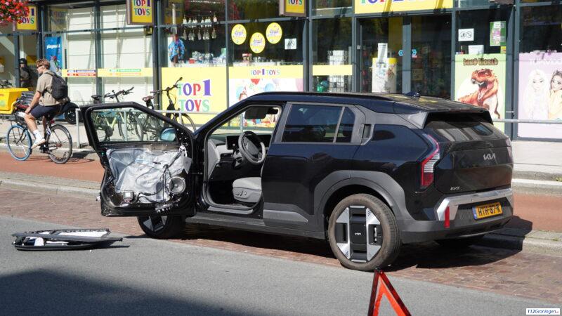 Groningen – Op de Zonnelaan heeft maandagmiddag een auto een deur kapot gereden van een