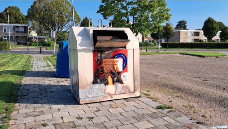 Brandweer blust brandende kledingcontainer in Delfzijl
