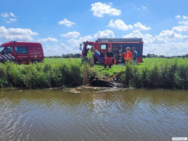 Brandweer Oldehove zet zondagmiddag twee koeien op het droge
