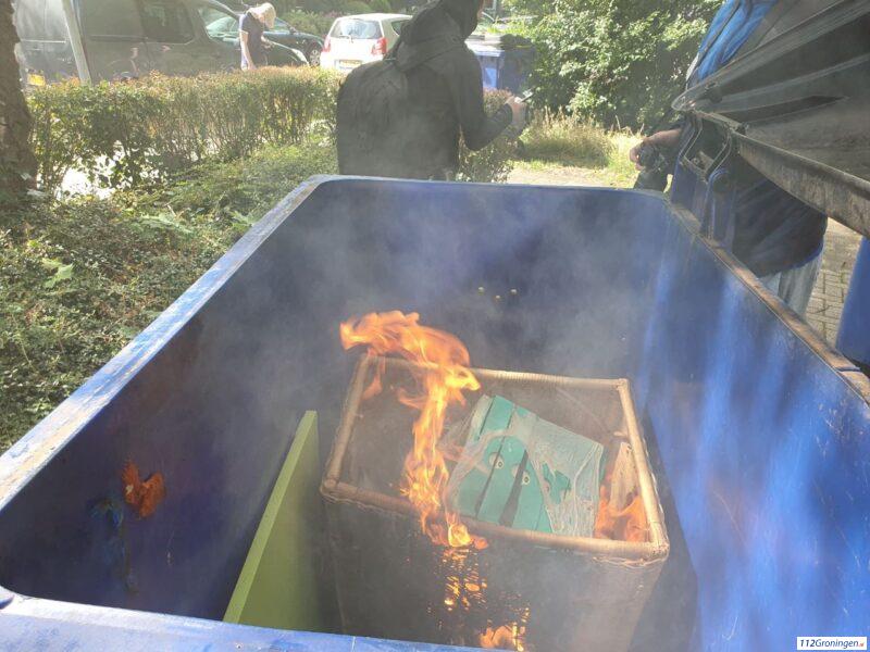 Papiercontainer in de brand in Groningen