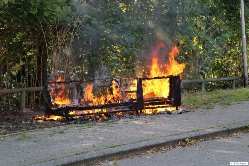 Bankstel in de brand bij de Hoendiepbrug in de stad