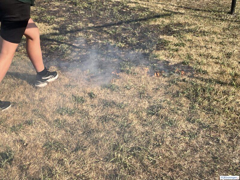 Voetbalveld staat in brand in Uithuizen