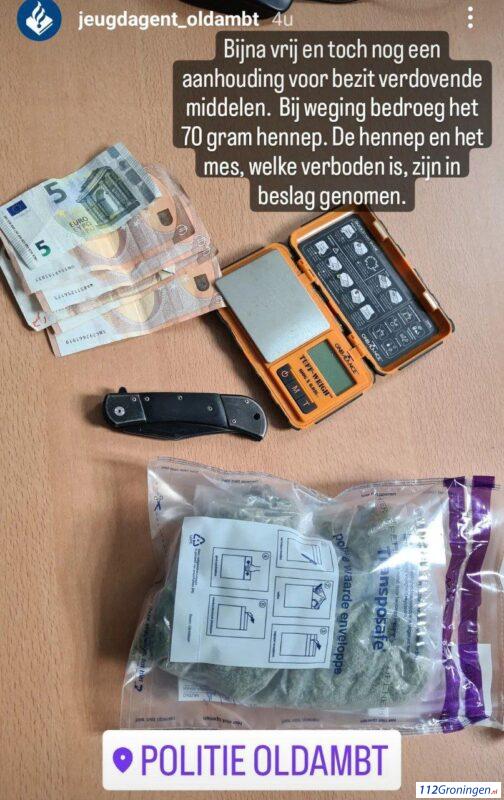 Winschoten – De politie heeft woensdag een persoon aangehouden voor het bij zich dragen van