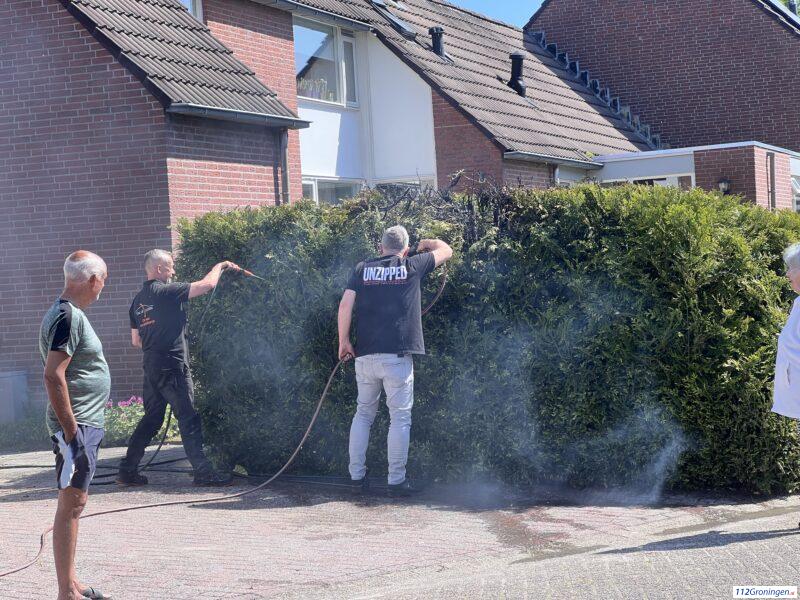 Siddeburen – Bij de Koningsakkers in Siddeburen stond zaterdagmorgen een heg tegen een woning in
