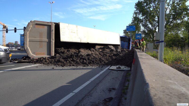 Groningen – De hulpdiensten hebben vrijdagochtend een deel van het Julianaplein afgesloten vanwege een gekantelde
