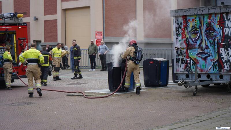 Groningen – Een ondergrondse papiercontainer aan de Kruitstraat stond vrijdagmiddag goed in brand. De brandweer