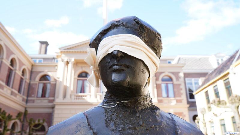 Groningen – In de binnenstad van Groningen heeft actiegroep Scientist Rebellion zondagmorgen standbeelden voorzien van