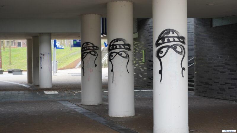 Pilaren bespoten met graffiti op station Europapark