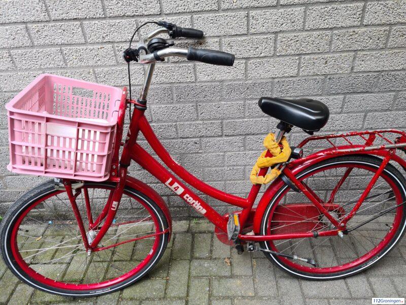 Groningen – Wie is deze opvallende knalrode Cortina damesfiets met roze mand door fietsdiefstal kwijt