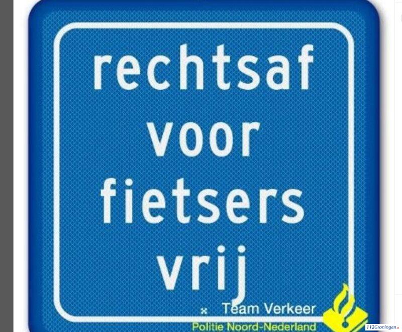 Groningen – In Groningen hangt op een aantal kruisingen dit bord. Dit bord geldt dan